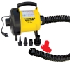 This is the best performing 120 volt air pump available, inflating and deflating at unprecedented speed. Peak pressure is nearly 3.0 psi, plenty of pressure to get boats, dinghys, rafts and reinforced backyard items nice and firm. Four universal adapters are provided to fit all valves commonly used on boats, kayaks, towables and other inflatables. The adapters lock onto the 36 inch long heavy duty reinforced hose. A Pressure Release Valve is included to limit pressure to 1.4 psi for preventing over-inflating towables, pool toys and other vinyl and nylon covered inflatable items. The accordion-style hose locks onto the pump, eliminating annoying disconnections. You’ll love the convenience of the screw-on Boston Valve adapter, an AIRHEAD exclusive. For added convenience, there’s a carry handle and a 10 ft. long power cord. It draws 7.1 amps / 917 watts. Volume is 480 liters/minute.