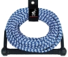 A high quality 1 section ski rope for skiing, wake boarding and knee boarding. The 12" aluminum core handle has a performance "Tractor" grip and molded finger protectors. You'll love the blue and white candy stripe color scheme of the UV-treated 16-strand rope. A Rope Keeper is included for tangle-free storage.