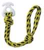 Conveniently attach and detach tube tow ropes to towables. There's no need to thread 60' of rope through the tow strap each time you connect or disconnect a tow rope. The high impact Kwik-Connect has a 1" diameter hole to accept up to 6,000 lb. break strength tube ropes. Recommended for 1 to 5 rider towables that are not equipped with Kwik-Connects.