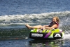 The Turbo Blast is designed with speed in mind: with a specially designed shape that cuts through the wake, you’ll be cruising over the water all summer long. The tube features a Kwik-Connect for easily attaching your tube to the rope, and a partial tube cover with a newly updated design. Four neoprene knuckle guarded handles and a self-draining floor help keep you comfortable as you ride, while the heavy-duty PVC bladder paired with our signature Speed Safety Value keep you safe and secure while on the water. The Turbo Blast is fast, safe and ready for hours of fun out on the water.